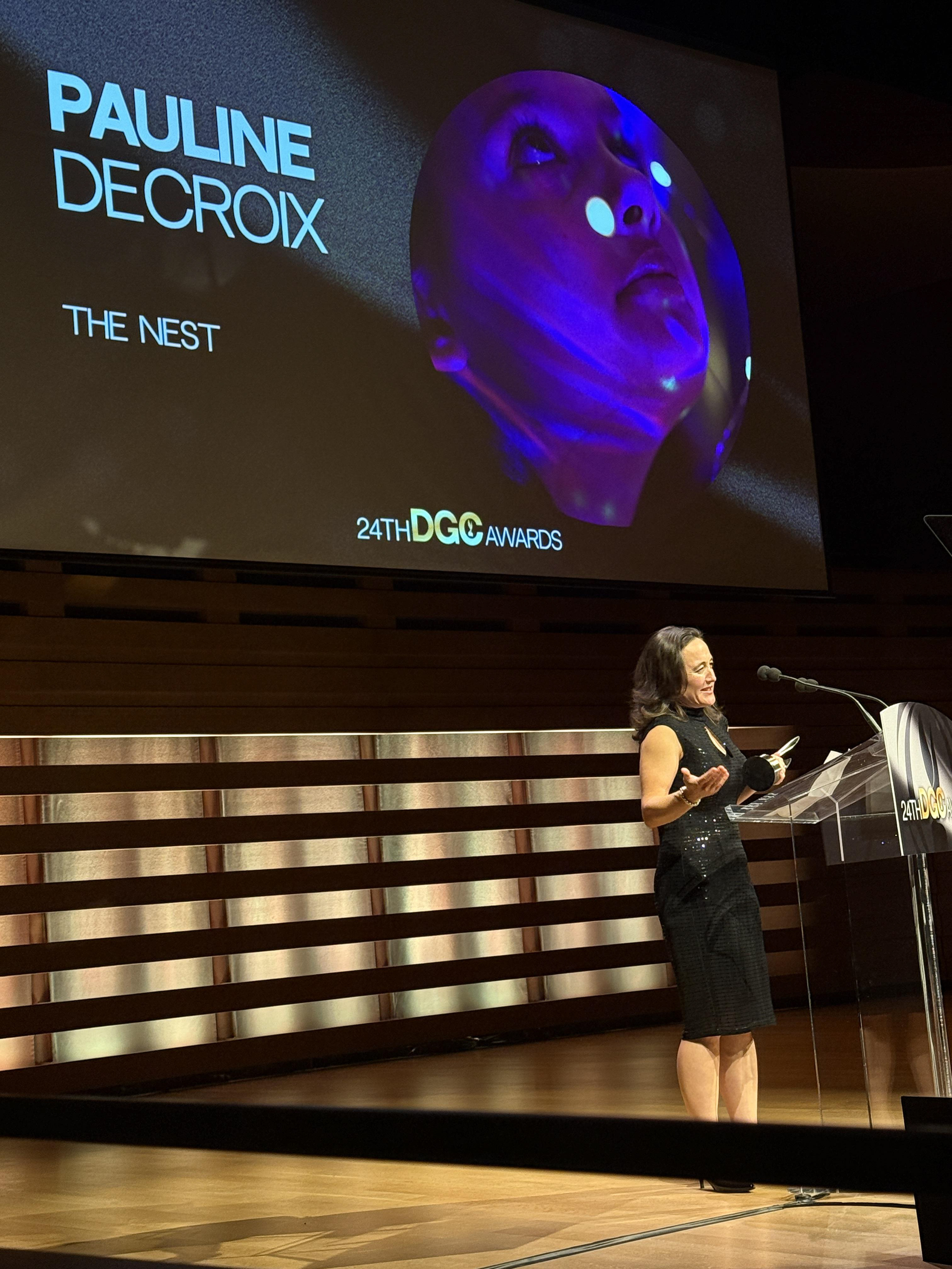 Le 8 novembre 2025, la DGC a organisé la cérémonie au Koerner Hall à Toronto, et j'ai eu l'honneur de recevoir un prix pour mon travail sur THE NEST. Recevoir un tel prix est très important pour moi et pour ma carrière, et je tiens donc à remercier mes pairs qui ont siégé au jury et ont estimé que mon travail méritait un tel honneur.